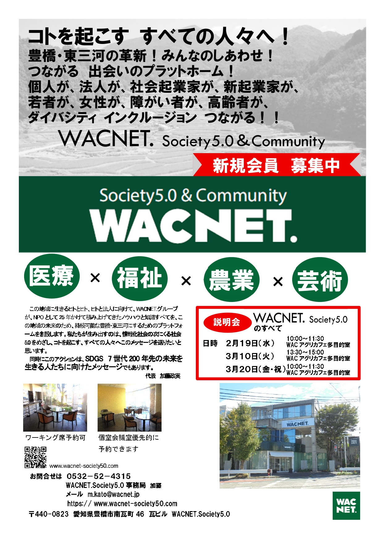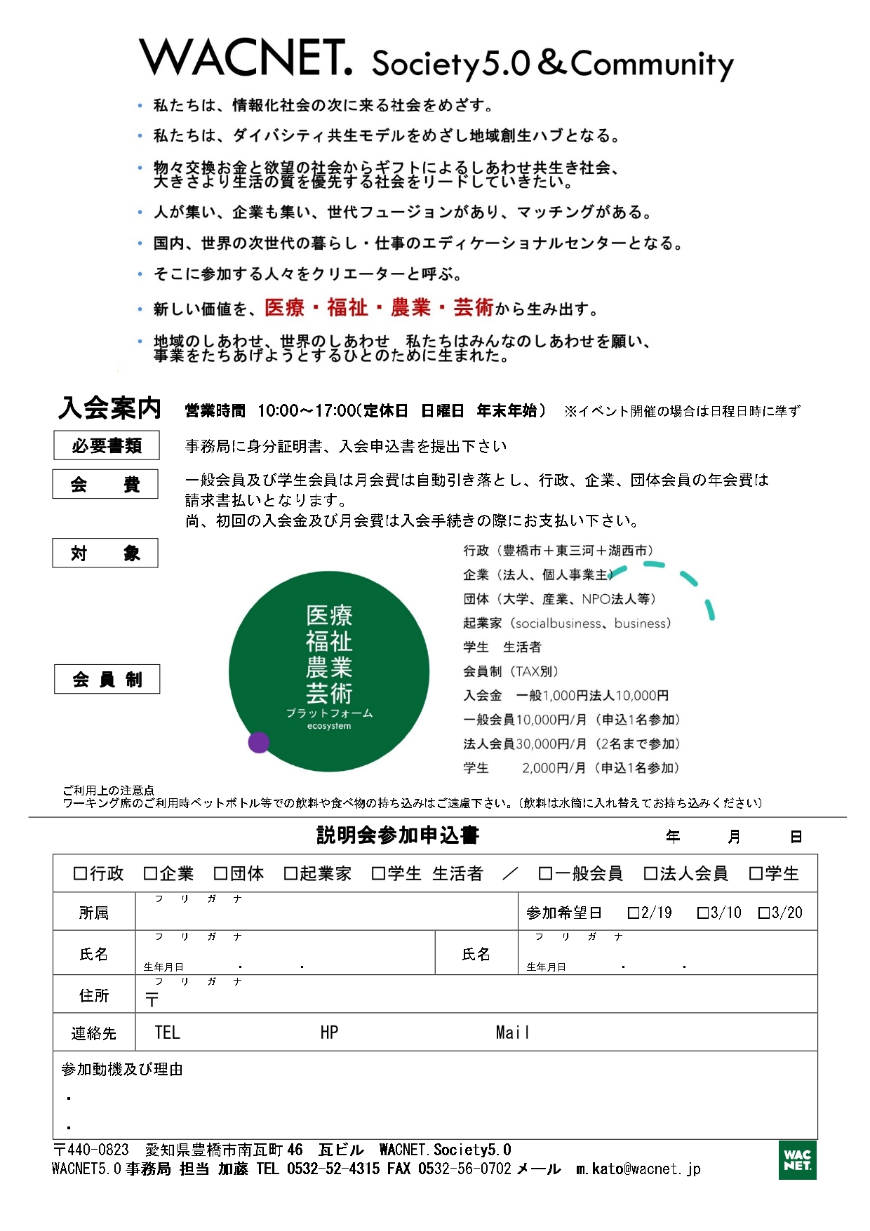 ●WACNET.Society5.0ご入会と説明会のご案内(2026年2月3月) クリックすると拡大します。 ※入会申込のリーフレットは下方からダウンロードできます。 ※WACNET.Society5.0リーフレット(入会申込書)のダウンロードはこちらをクリックしてください。