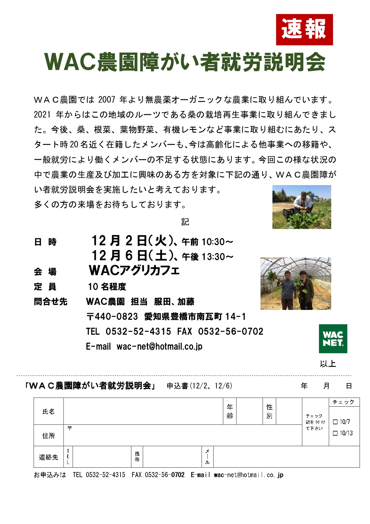 ●WAC農園障がい者就労説明会のご案内(2025年12月)