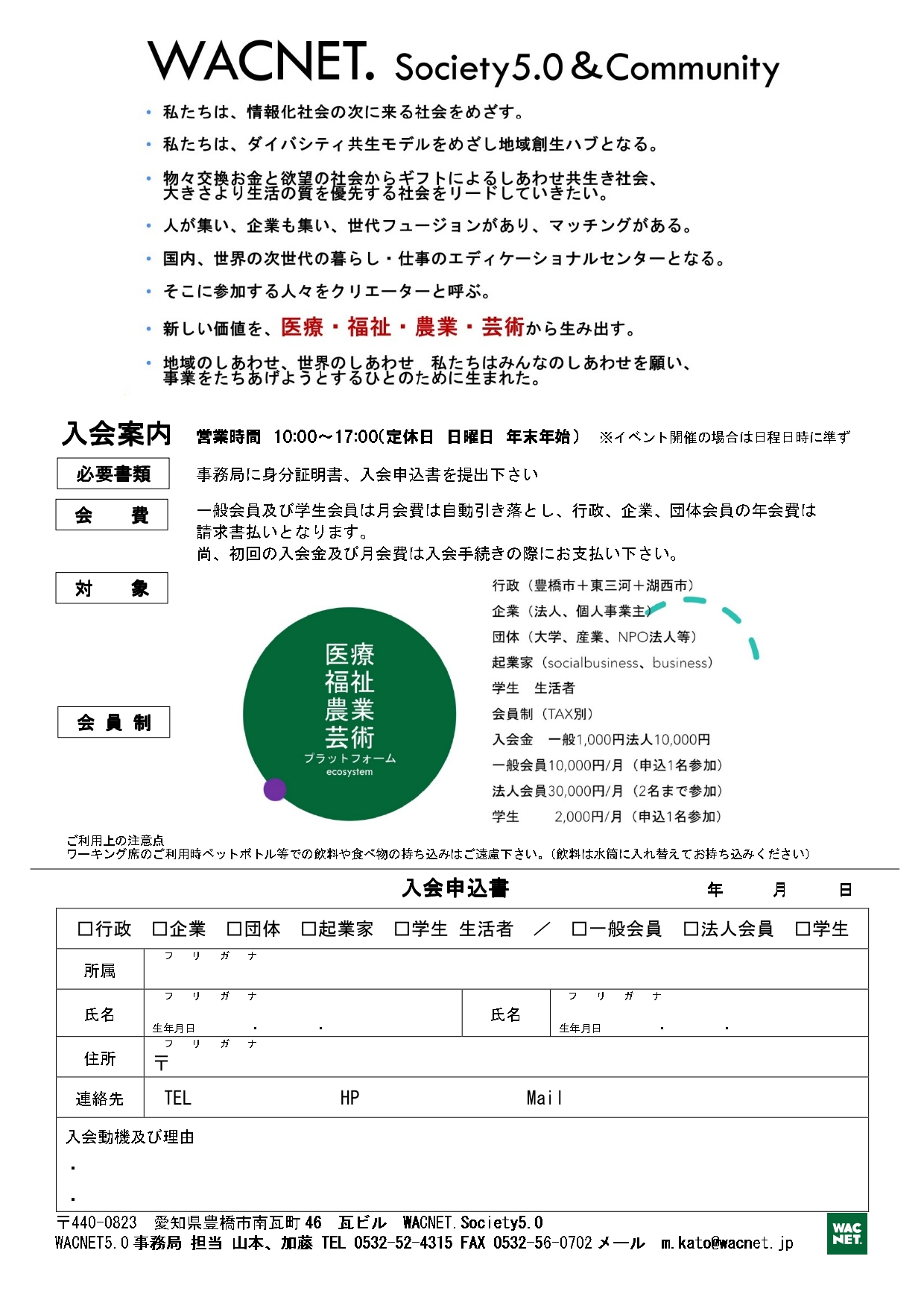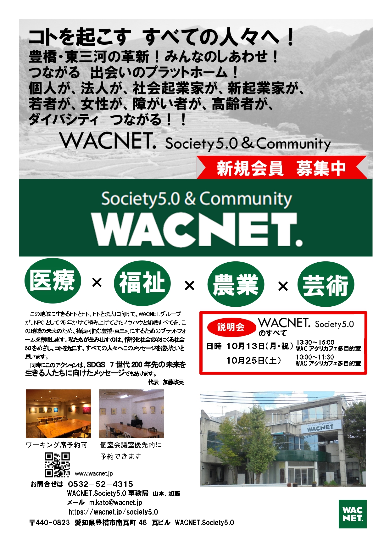 ●WACNET.Society5.0ご入会と説明会のご案内(2025年10月) クリックすると拡大します。 ※入会申込のリーフレットは下方からダウンロードできます。 ※WACNET.Society5.0リーフレット(入会申込書)のダウンロードはこちらをクリックしてください。