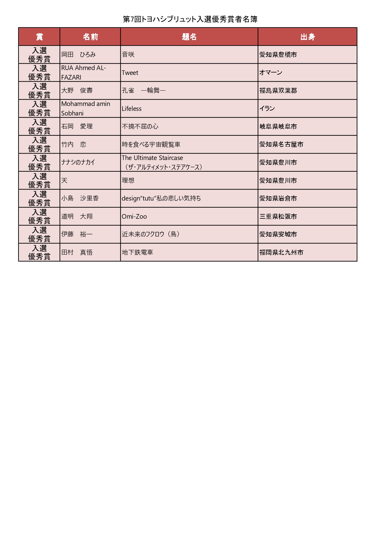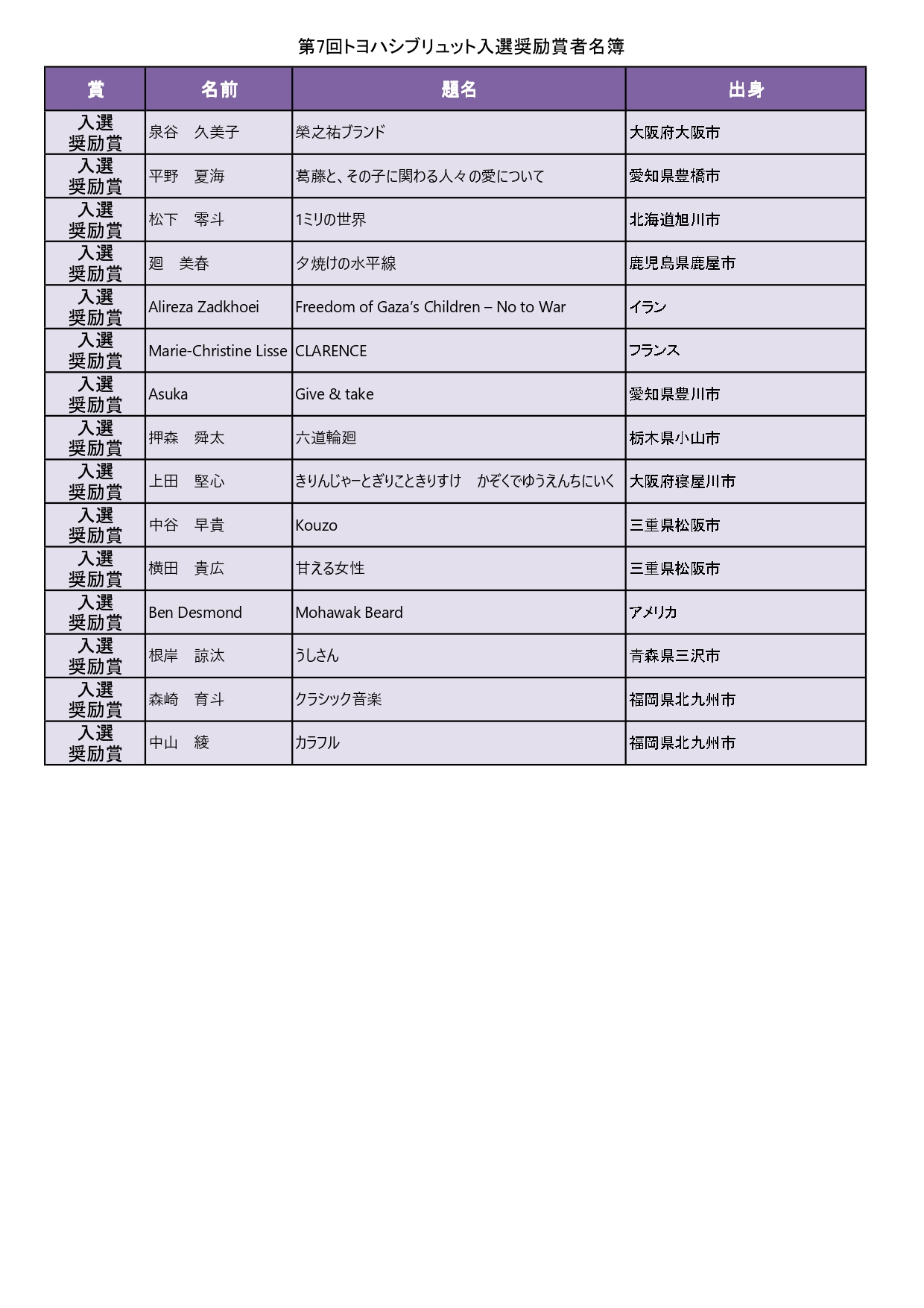 ※各賞入賞者名簿は下方にあります。