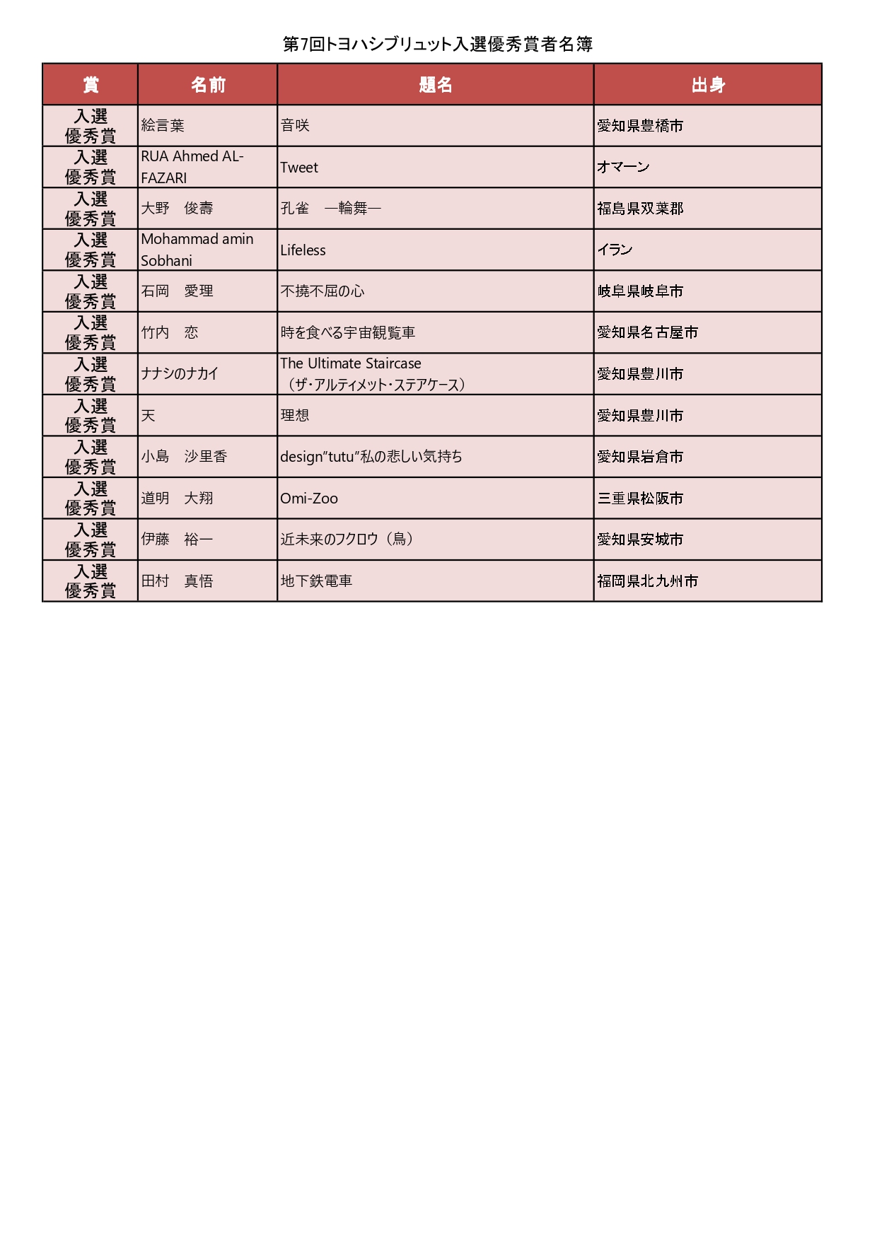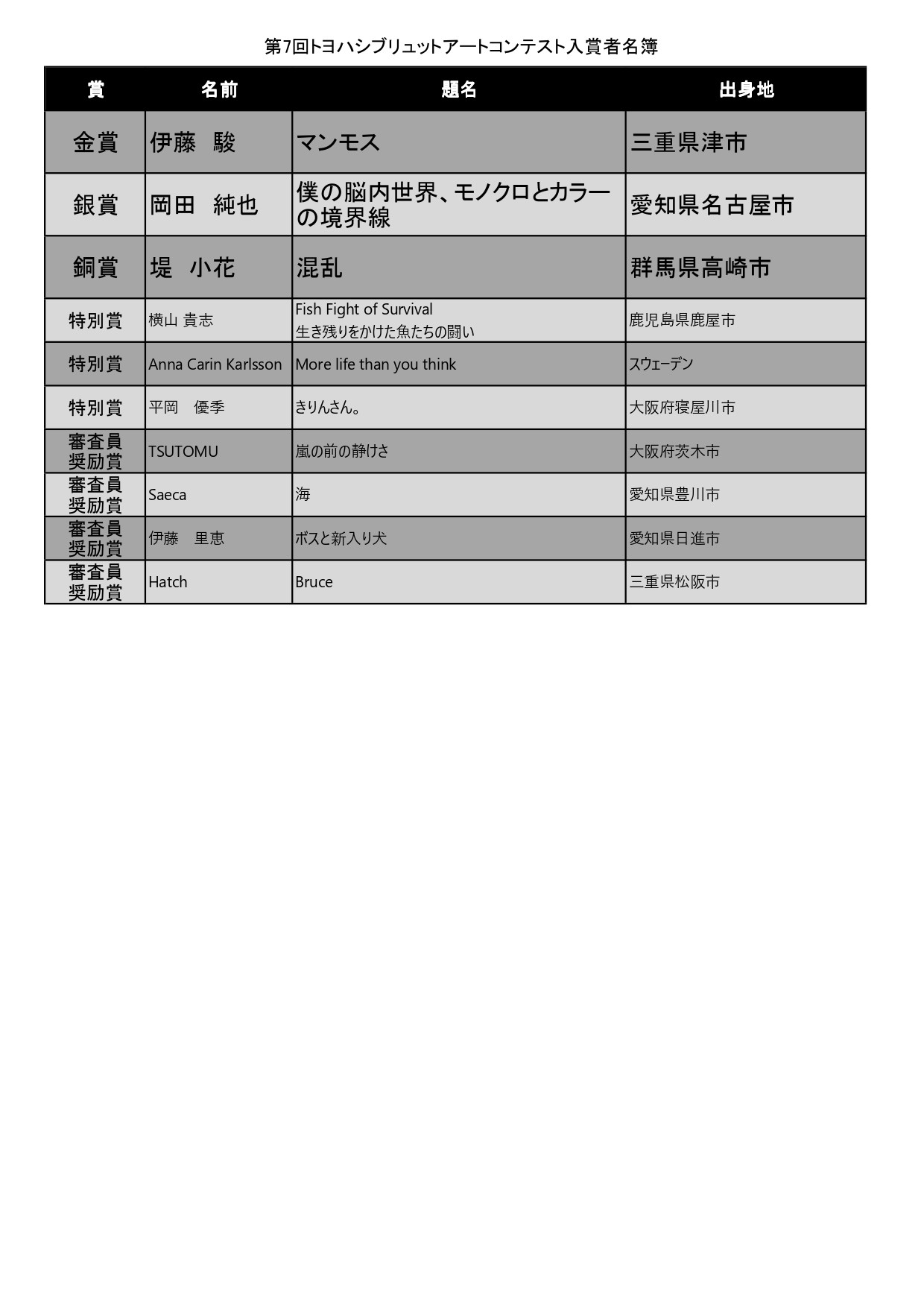 ★第7回トヨハシブリュットアートコンテストの入賞者が決定しました!