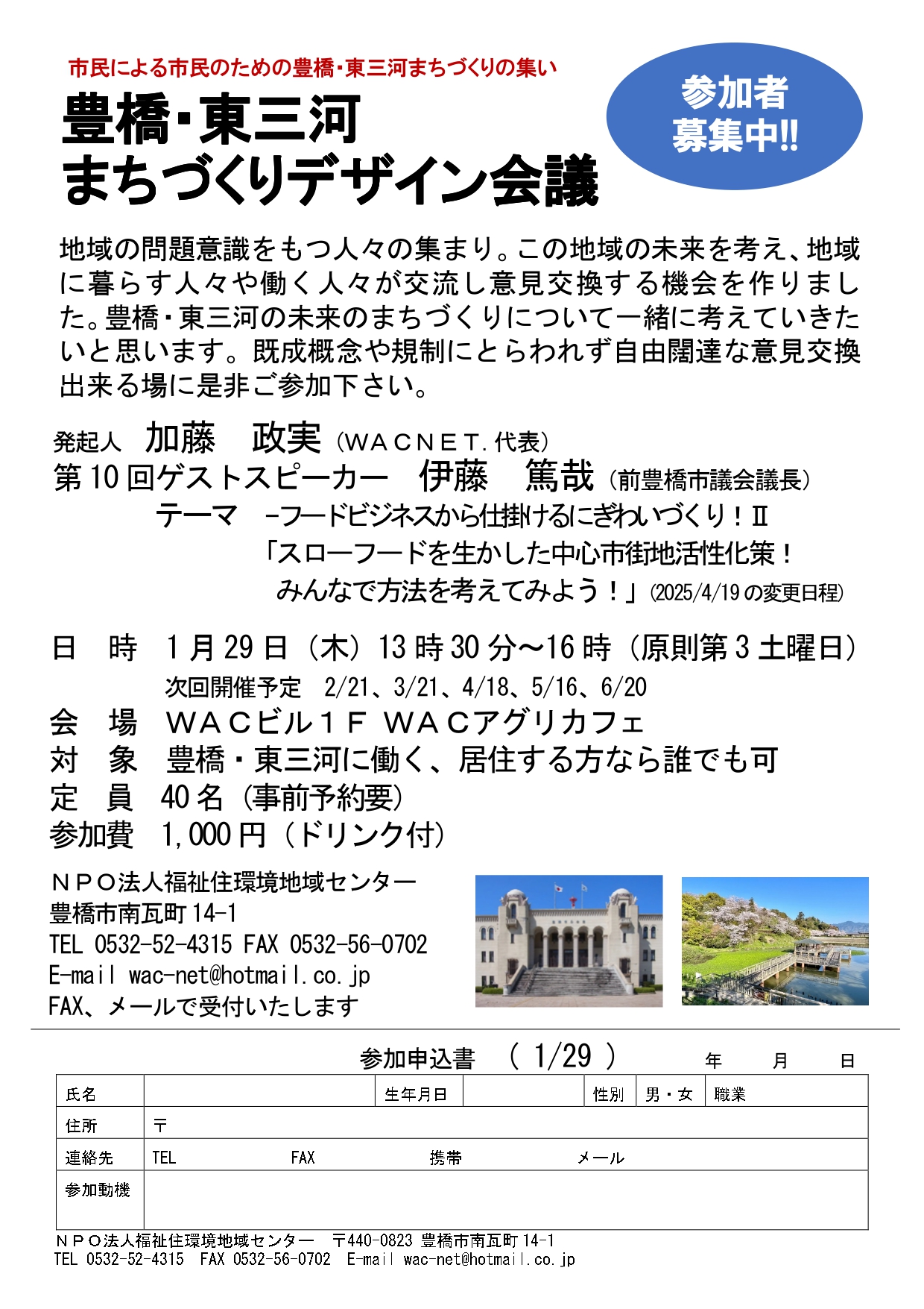 ★(お知らせ)4月19日(土)の、第10回豊橋・東三河まちづくりデザイン会議は都合により休止します。
