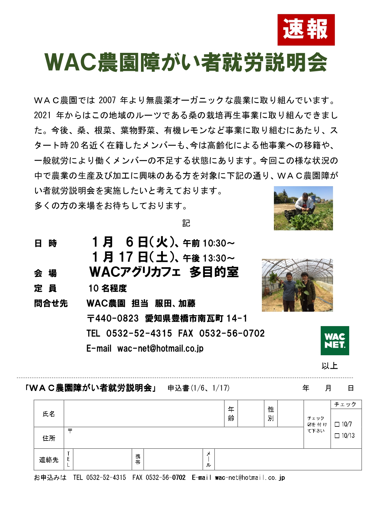 ●WAC農園障がい者就労説明会のご案内(2026年1月)