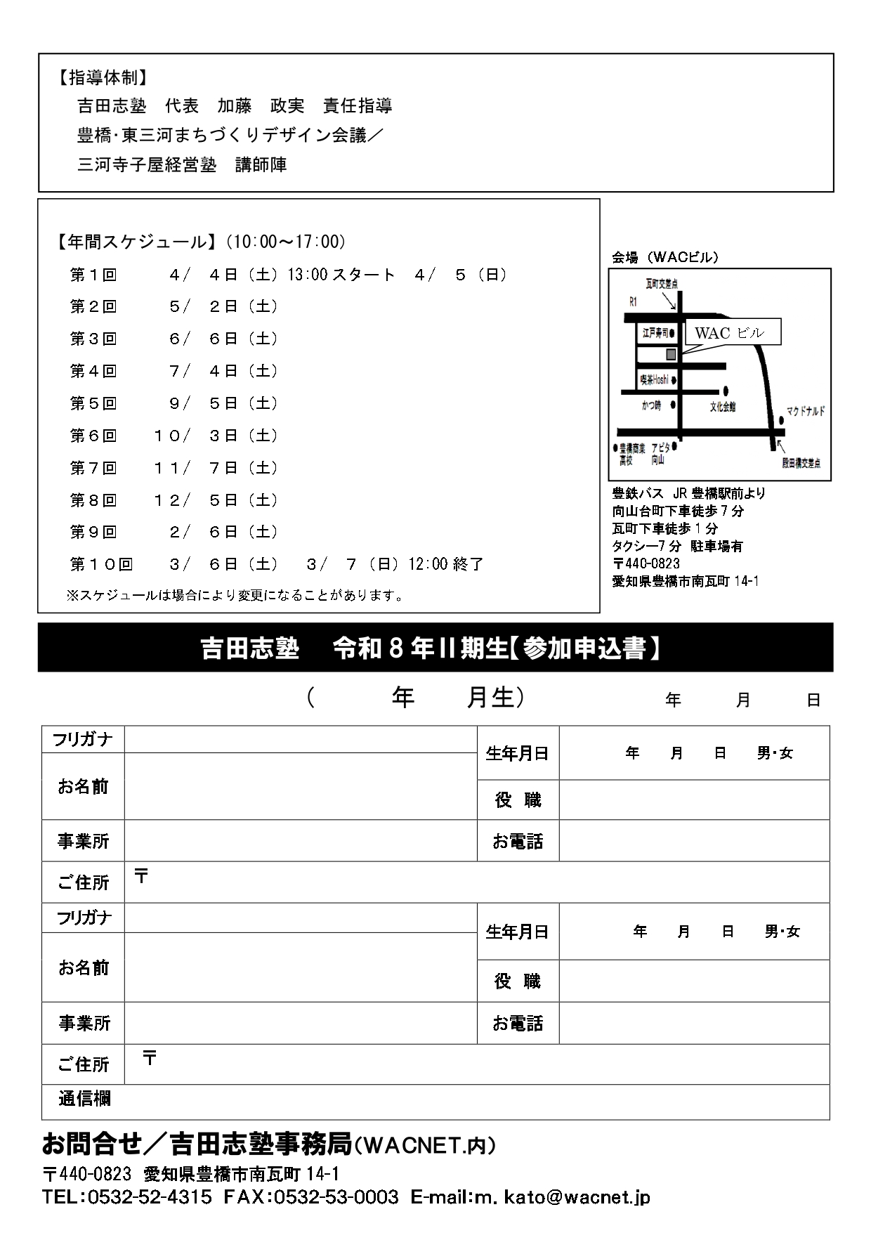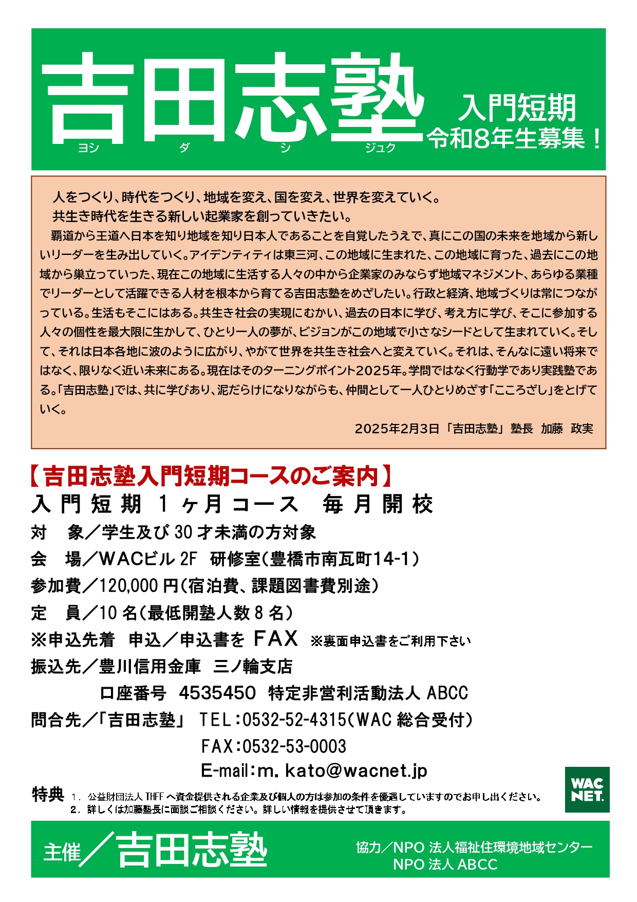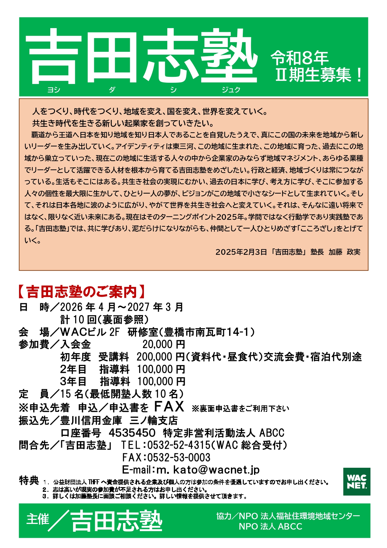 ●吉田志塾(令和8年Ⅱ期生)募集のご案内
