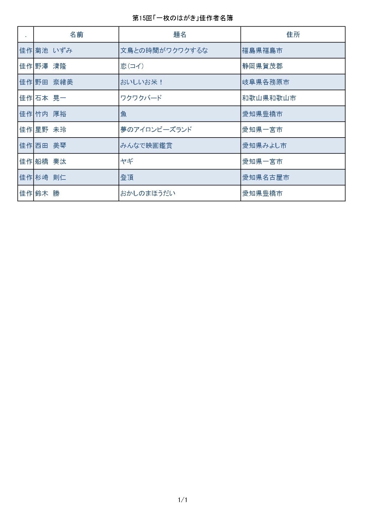 ★第15回「一枚のはがき」の入賞者が決定しました。